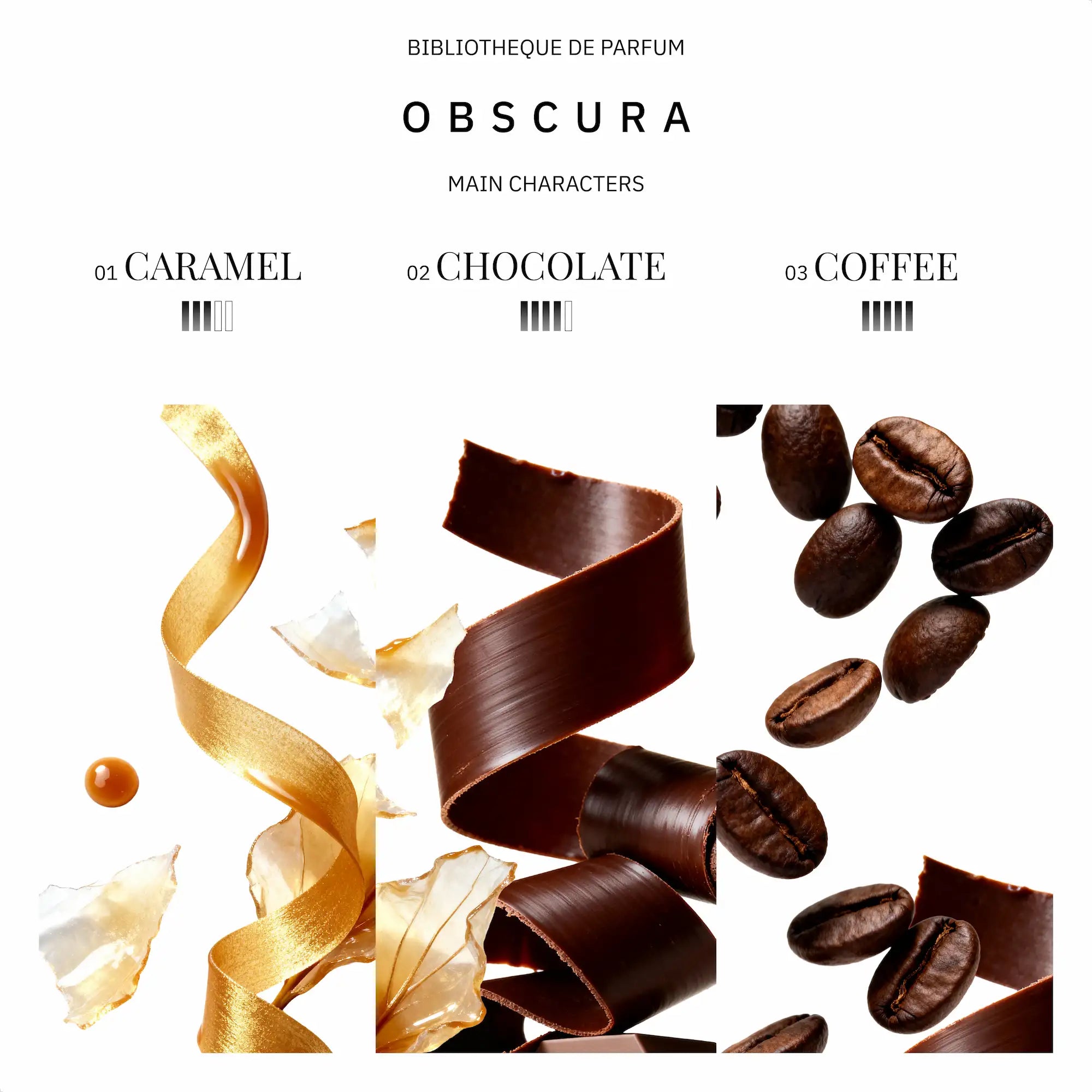 Obscura is oriental, spicy-sweet, and nocturnal. Caramel and rum intertwine with nutmeg, sandalwood, and smoke. Not a dessert, but a luxurious cocktail meant to be savored slowly. Seductive and warm.