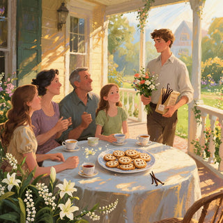 This is the third time he's come at the same time as the family remembers. He came home with a small bouquet and a jar of vanilla beans in a bag.