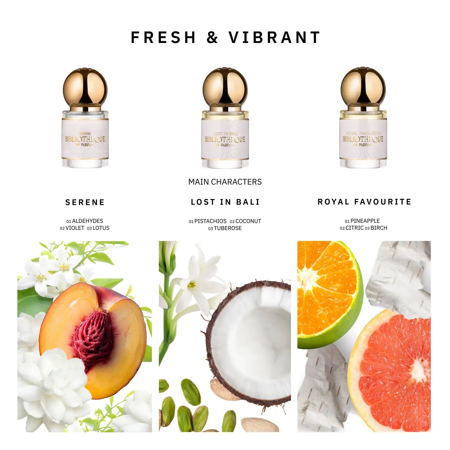 A warm tropical fragrance, creamy, exotic, and sensual with a soft coconut-amber sillage.